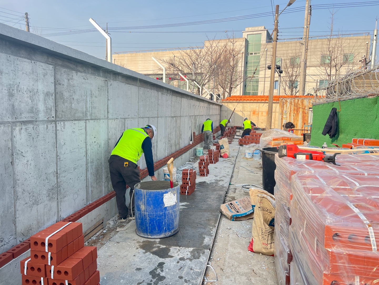 현장관리 : 현장 관리 철CON_C공사 : 4구간 거푸집 해체 작업 조적공사 : 2구간 적벽돌 설치 작업 현장관리 : 목재 정리 작업, 및 5구간 오후 버림 콘크리트 타설 작업 잡철공사 : 2구간 방음벽 부근 앙카 천공 작업 |